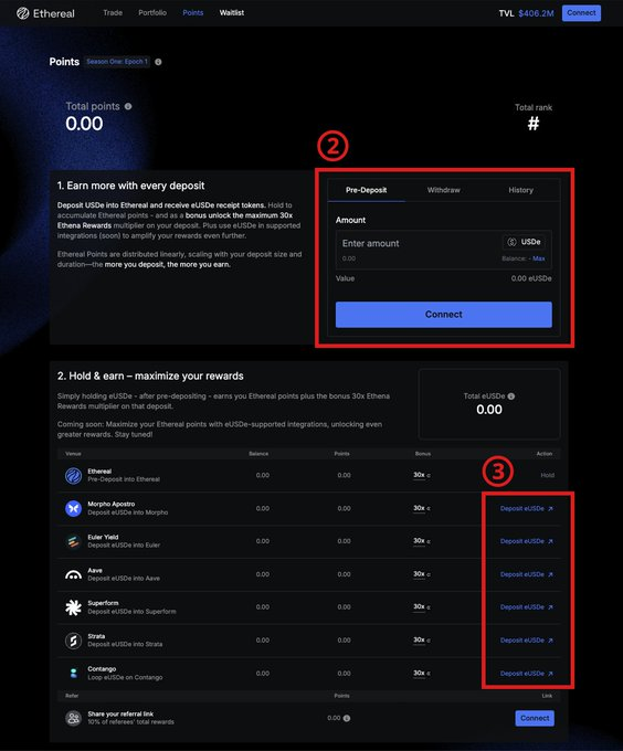 2. USDeをCEXなどで調達し、ポイントページで入金