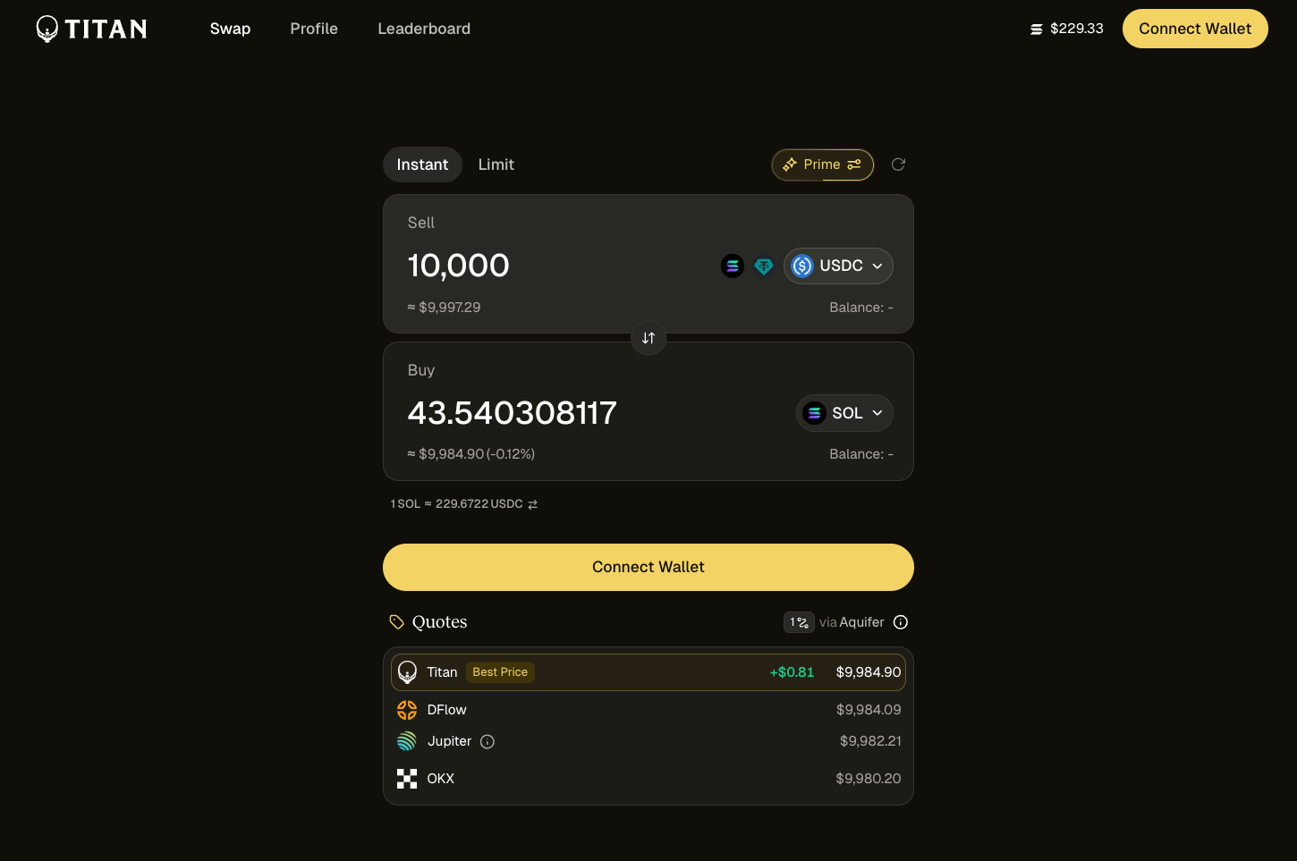 従来のDEXアグリゲーターが複数のDEXから最適な取引ルートを探すのに対し、Titanはさらにその上位に立ち、JupiterやOKX、DFlowといった主要なアグリゲーター自体を束ねて、最適なレートを提示します。
